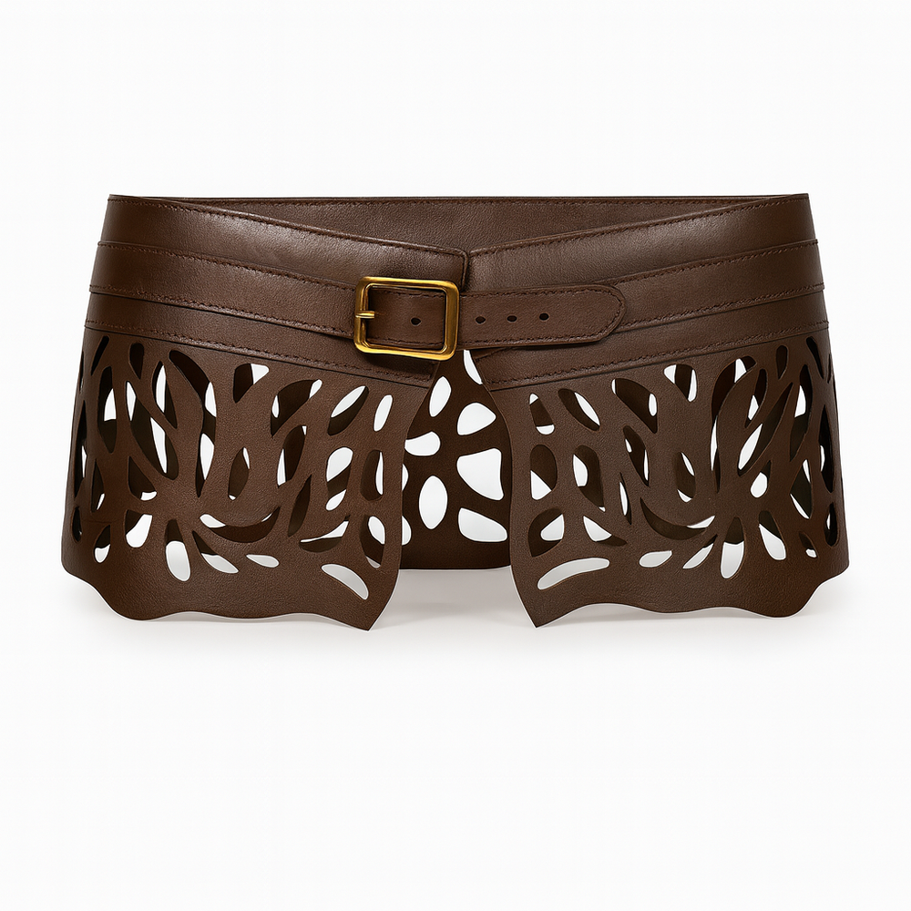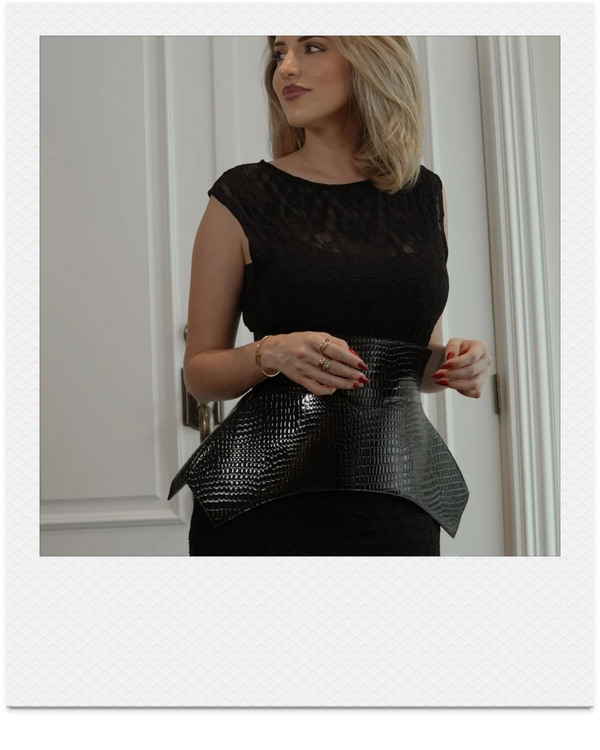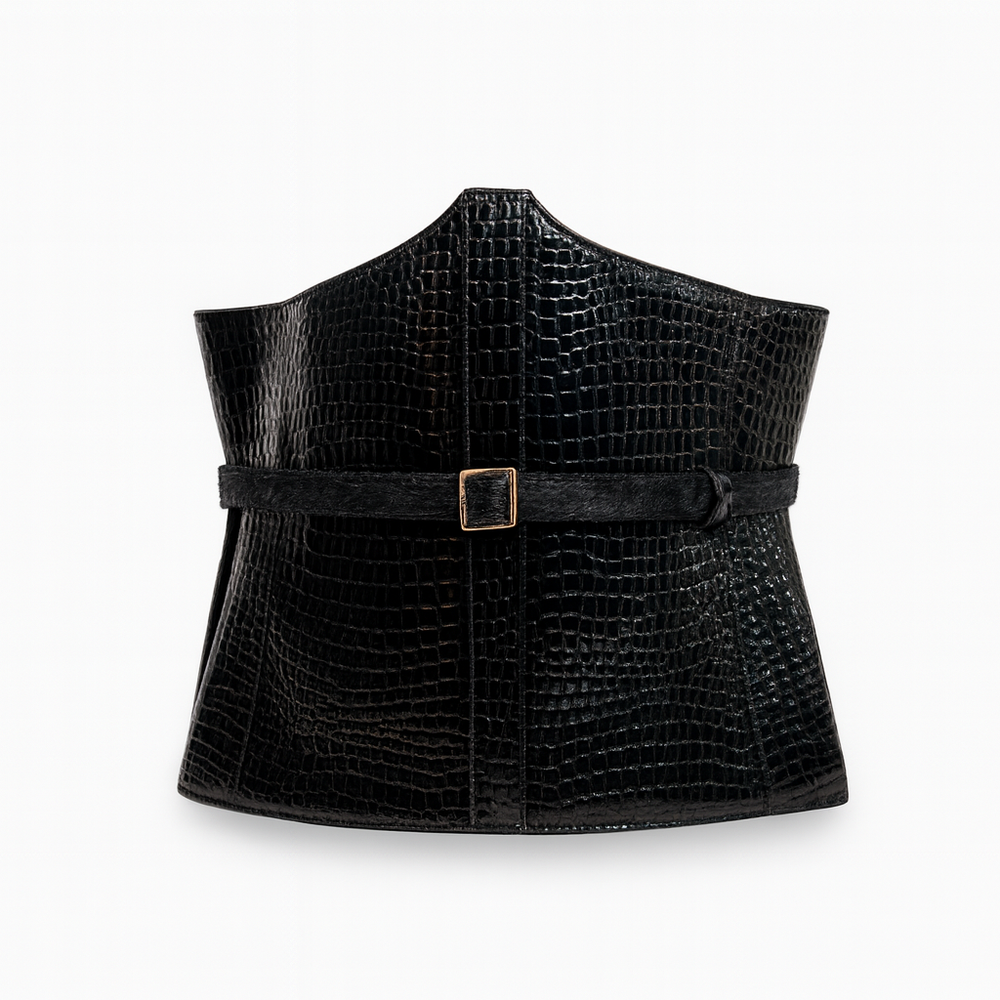 Con su textura salvaje de cocodrilo y su tono guinda imperial, esta pieza envuelve la cintura como una armadura elegante, símbolo de dominio y presencia.